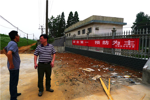 圖為市水利局長胡經(jīng)緯、分管安全生產(chǎn)的副局長涂鴻雁及相關(guān)人員在觀看安全生產(chǎn)宣傳板報和工作督查