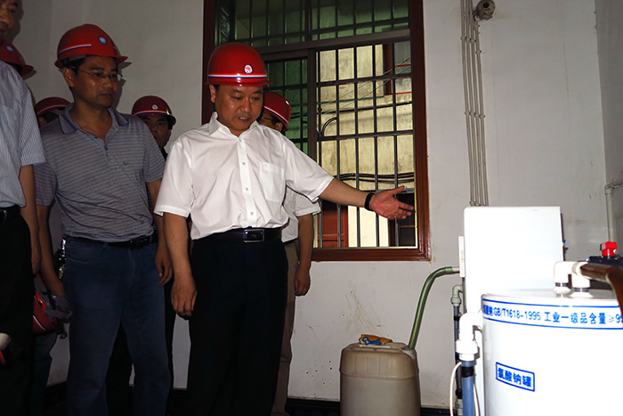 李國(guó)英副部長(zhǎng)在仔細(xì)察看水處理工藝流程
