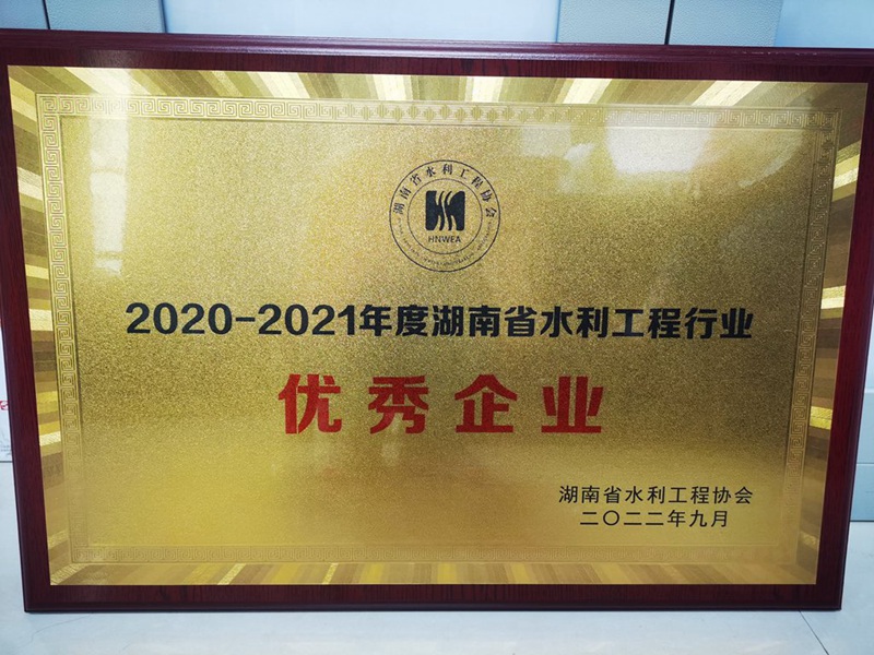 安沅公司榮獲2020—2021年度湖南省水利工程行業(yè)優(yōu)秀企業(yè)稱號(hào)。